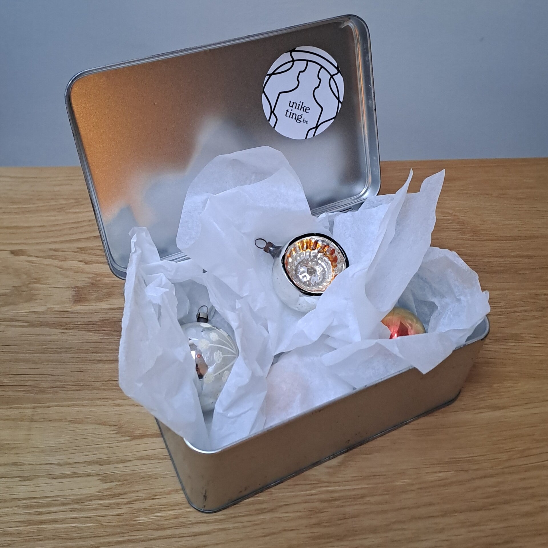 Een beetje historiek?! : Als ik chat GPT mag geloven (ja, soms zijn we ook modern, maar meestal vintage ;) ) gaan glazen kerstballen terug tot de 16e eeuw in Duitsland. Deze zijn uiteraard niet zo oud, maar komen toch uit een tijd dat ze nog niet in grote massa werden geproduceerd, en dus echte ambachtskunstwerkjes zijn. Zelf met maar een paar van deze in je kerstboom krijgt ie alvast wat meer cachet. Of zet de blikken doos met wat lichtjes op je tafel, en je interieur schittert...