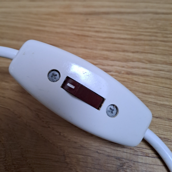 Conditie van dit tweedehands item : Goeie staat, met wat gebruikssporen op de lampenkap (zie foto's) maar geen beschadigingen. Getest en werkend.