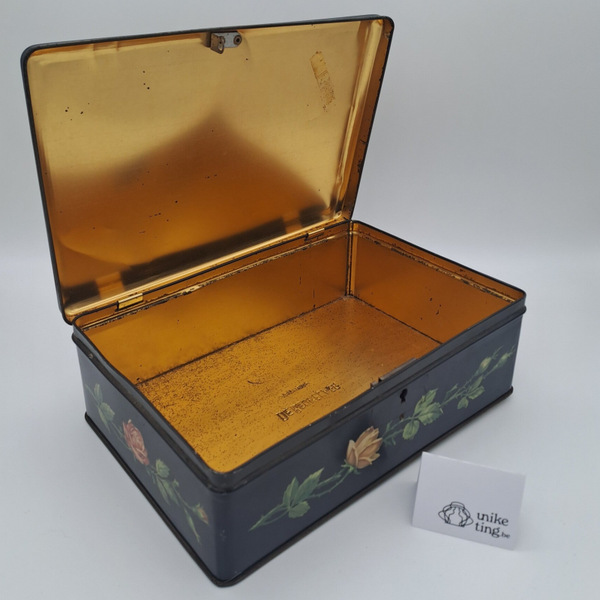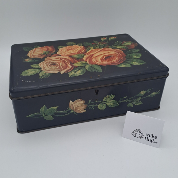 - Zwarte met roze rozen: gemerkt "De Beukelaer Antwerp" (ongeveer 25,5 x 17 x 9).