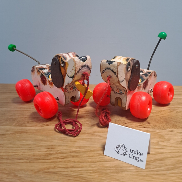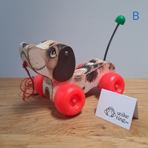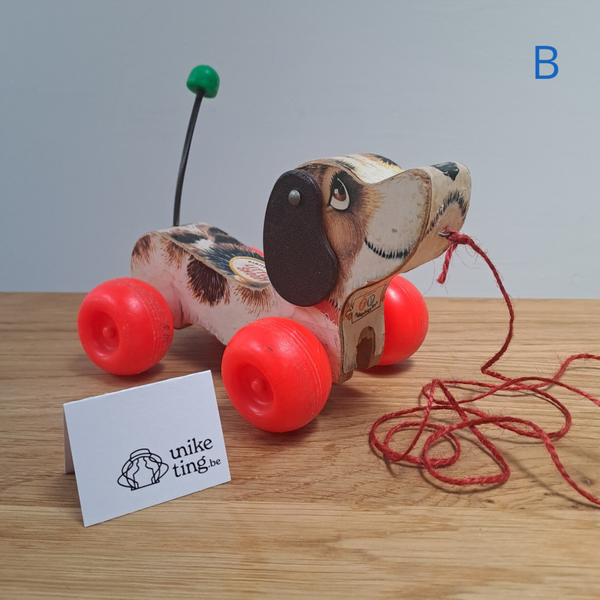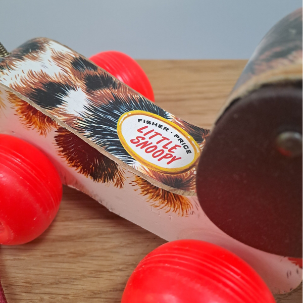 Beschrijving : Fisher Price little snoopy, een hondje voor peuters, om vooruit te trekken bij het wandelen, met een kwispellend staartje.