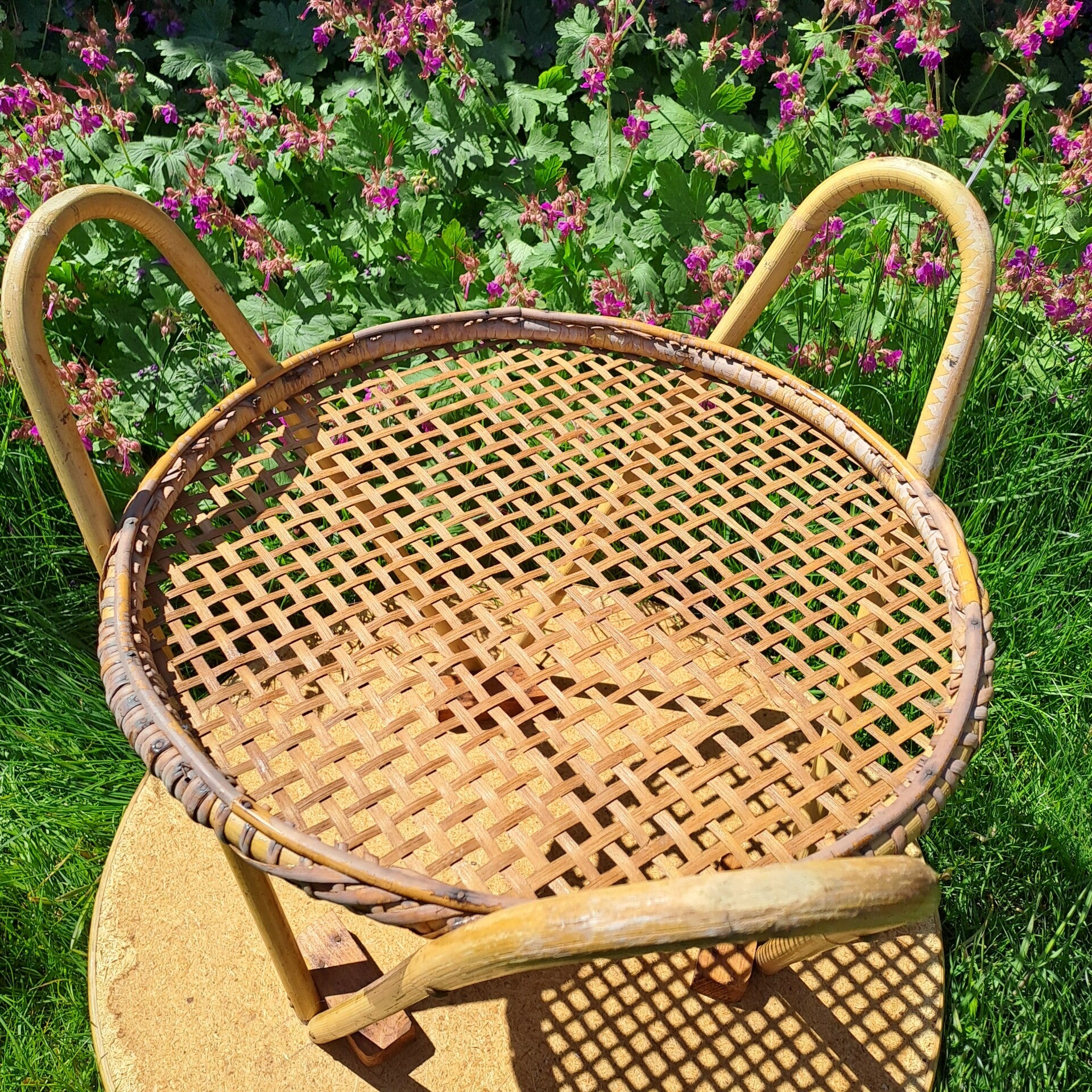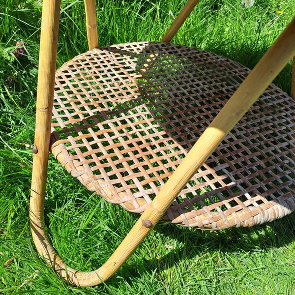 Conditie van dit tweedehands item : Vintage conditie. Zie foto's voor de staat van het rotan en de gebruikssporen op rode oppervlakte.