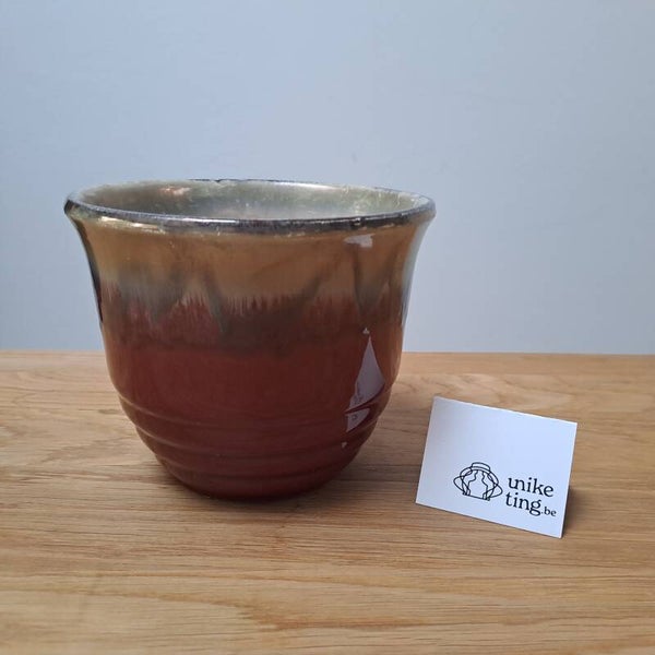 Conditie van dit tweedehands item : Goeie vintage conditie met hier en daar wat gebruikssporen, en een heel klein chipje onderaan. Verder enkel natuurlijke keramische oneffenheden.