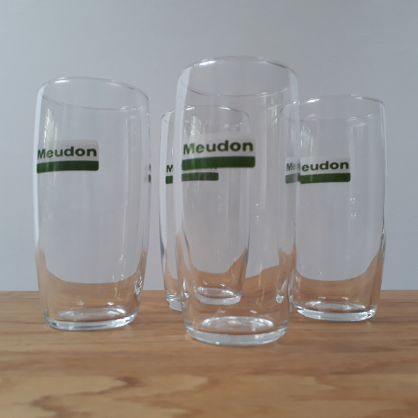 Beschrijving : Set van 4 limonade glaasjes van Meudon, met wit-groen logo.