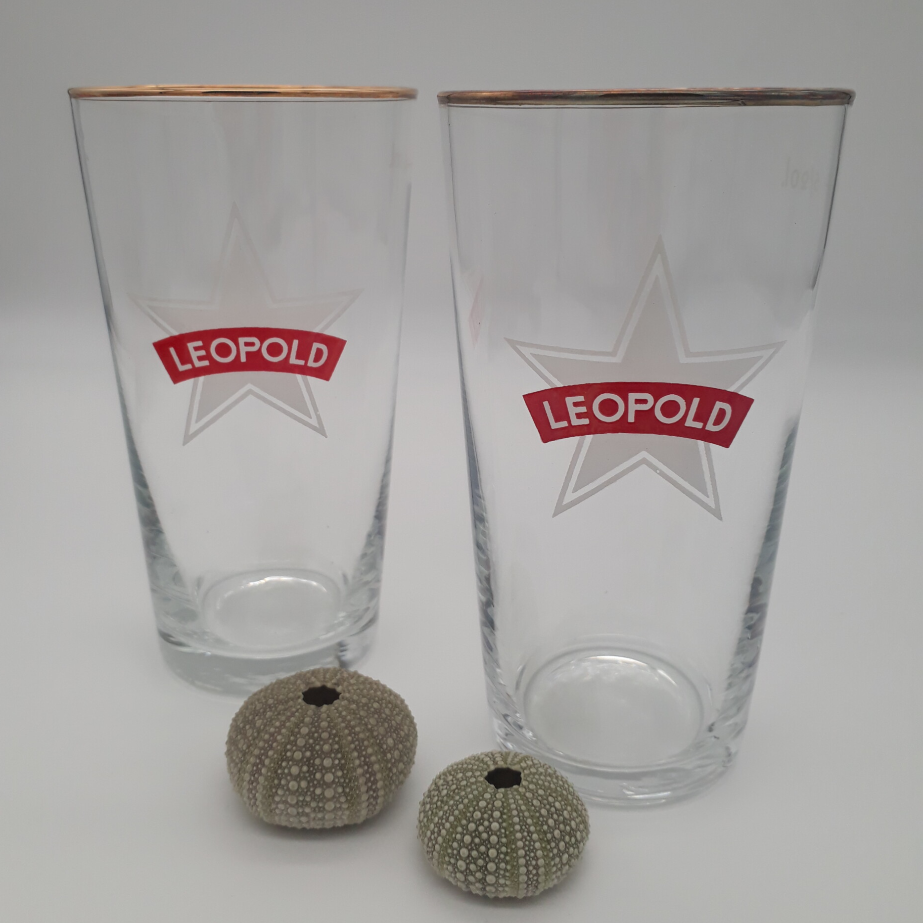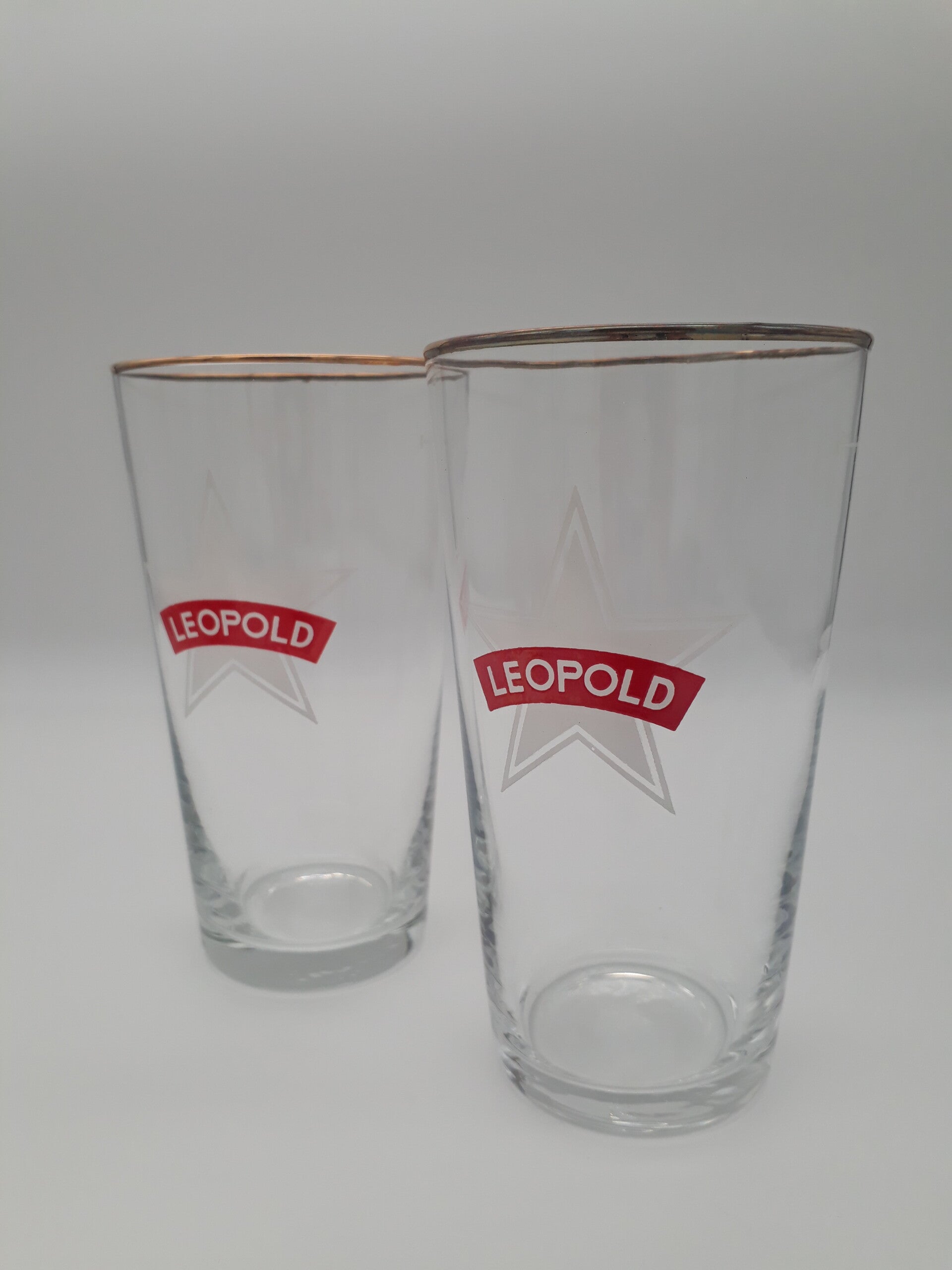 Beschrijving : Set van 2 bierglazen Leopold (rood ster) 5/20l.