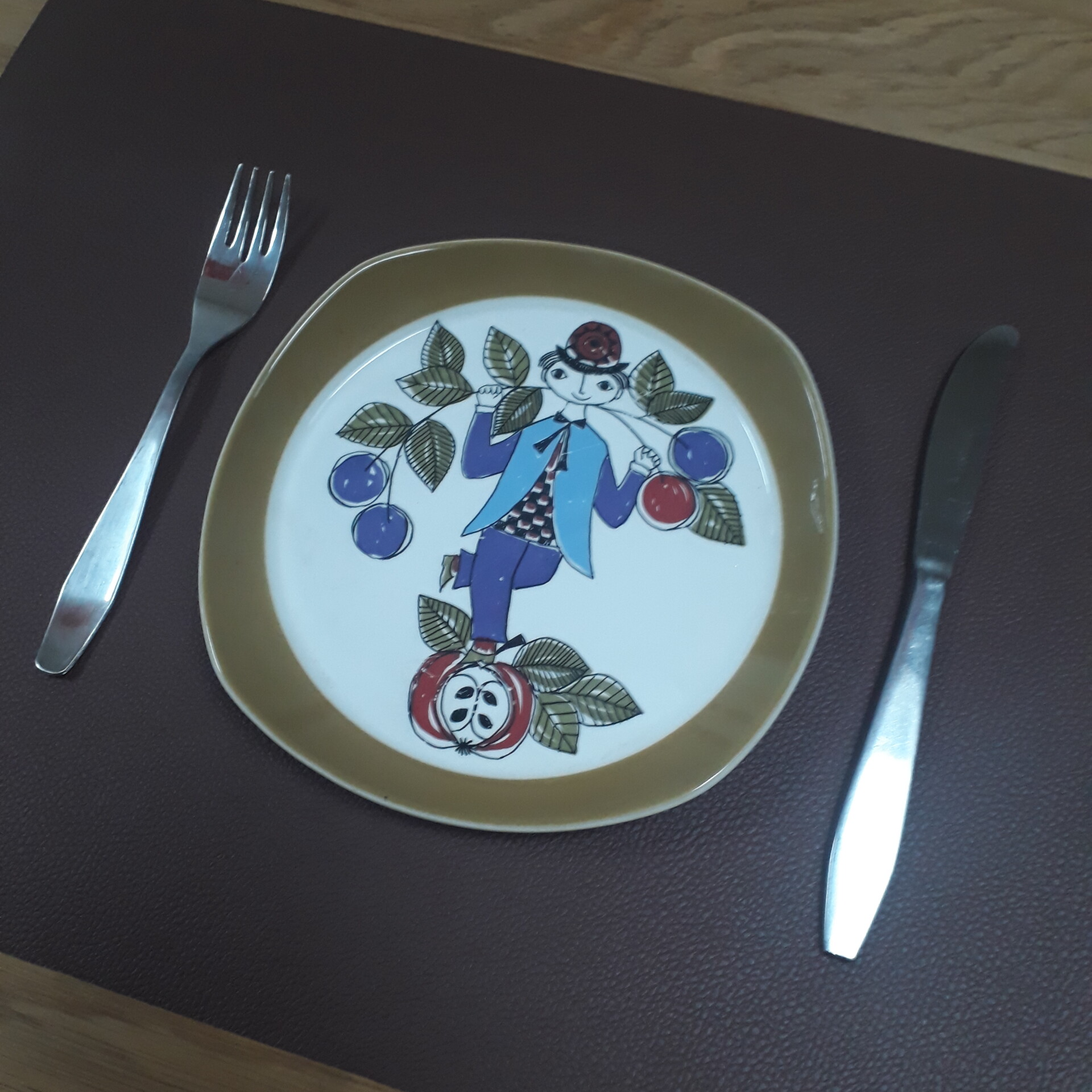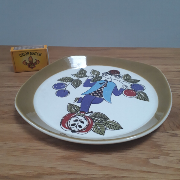 Decoratief bordje - mannetje met fruit (Figgjo Flint, Noorwegen)